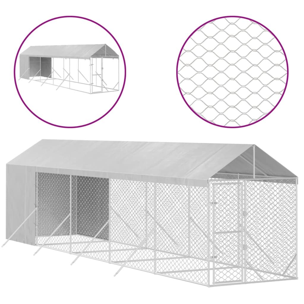 Home > Outdoor Dog Kennel with Roof Silver 6.6'x32.8'x8.2' Galvanized Steel